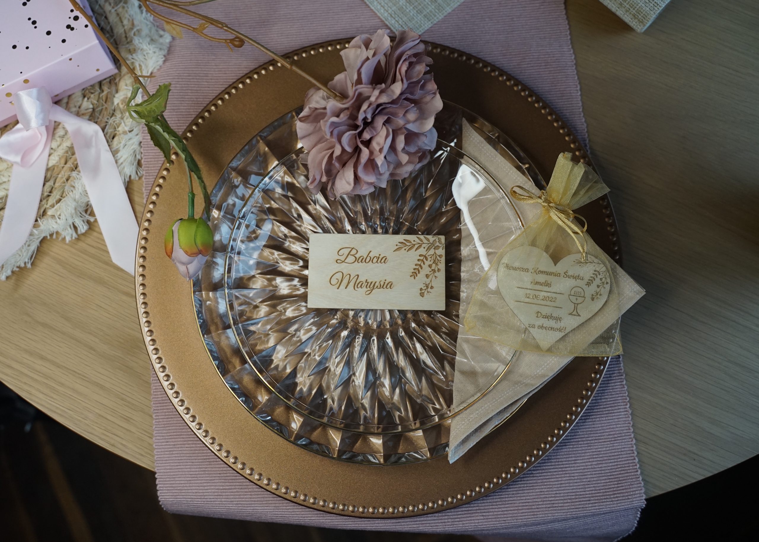 - Ułożone przy talerzykach gości – upominki mogą być przy okazji piękną dekoracją stołu