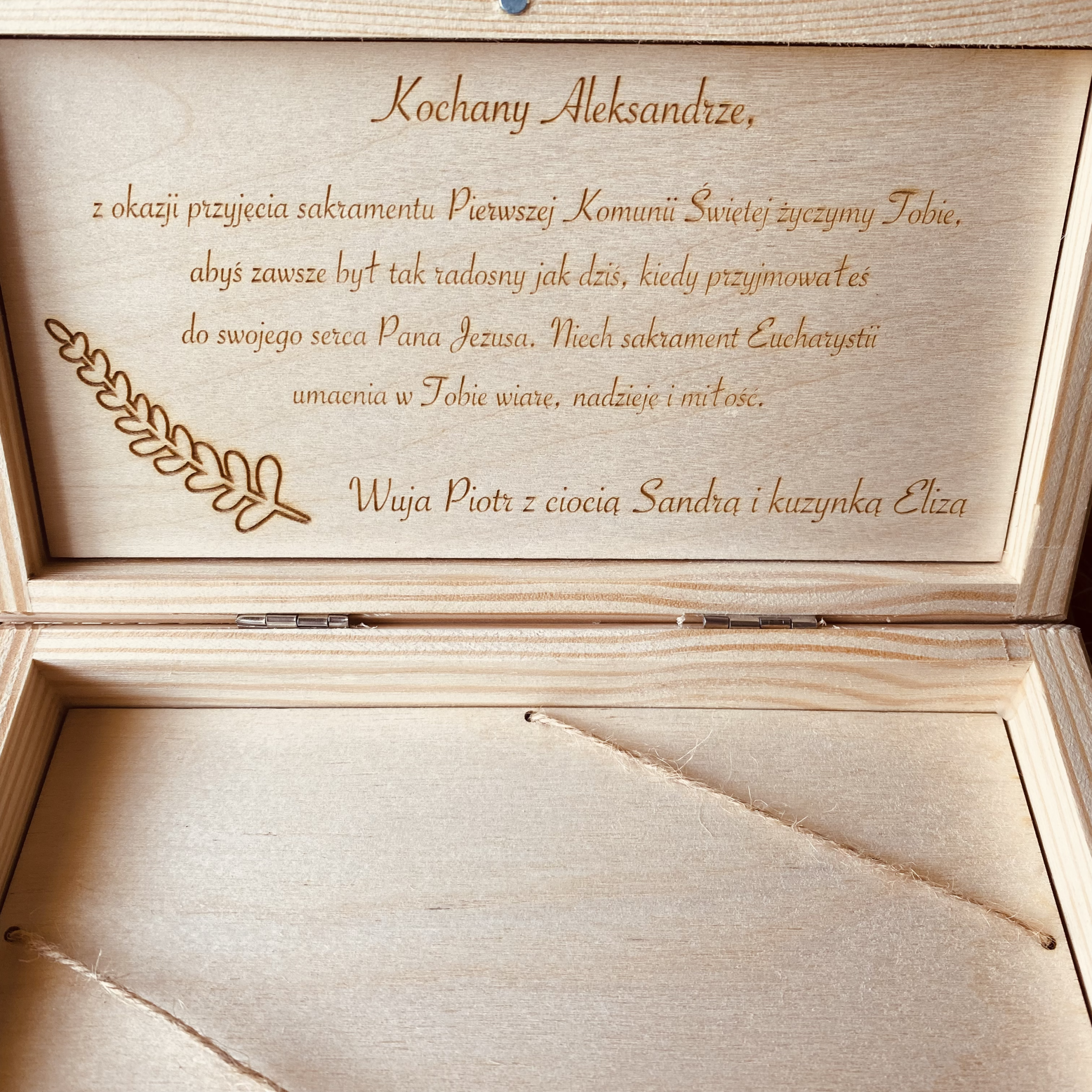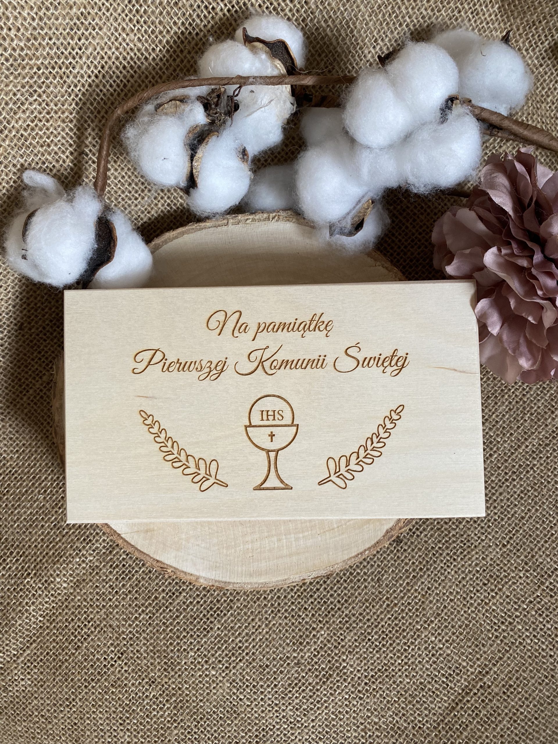 Drewniana pamiątka Komunijna