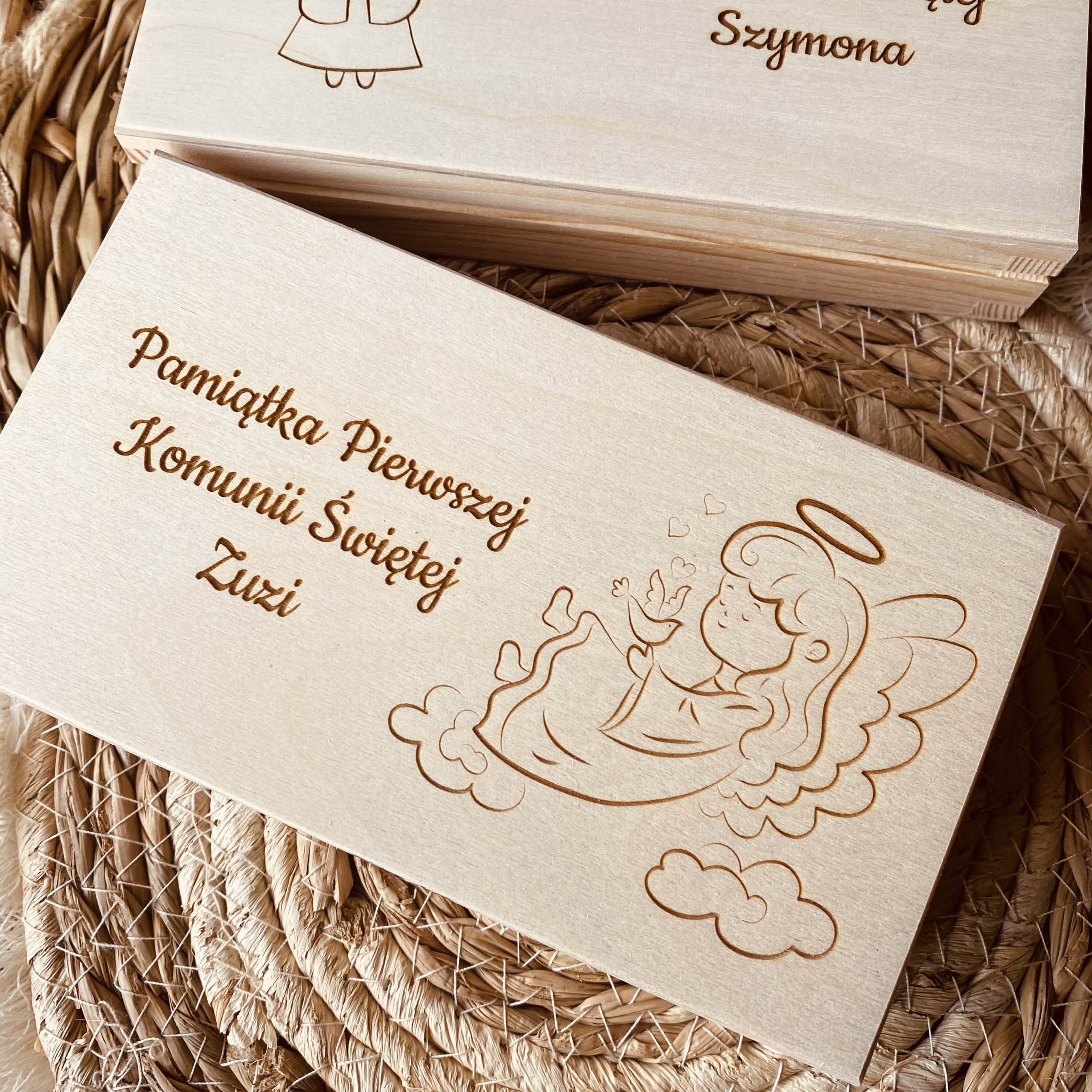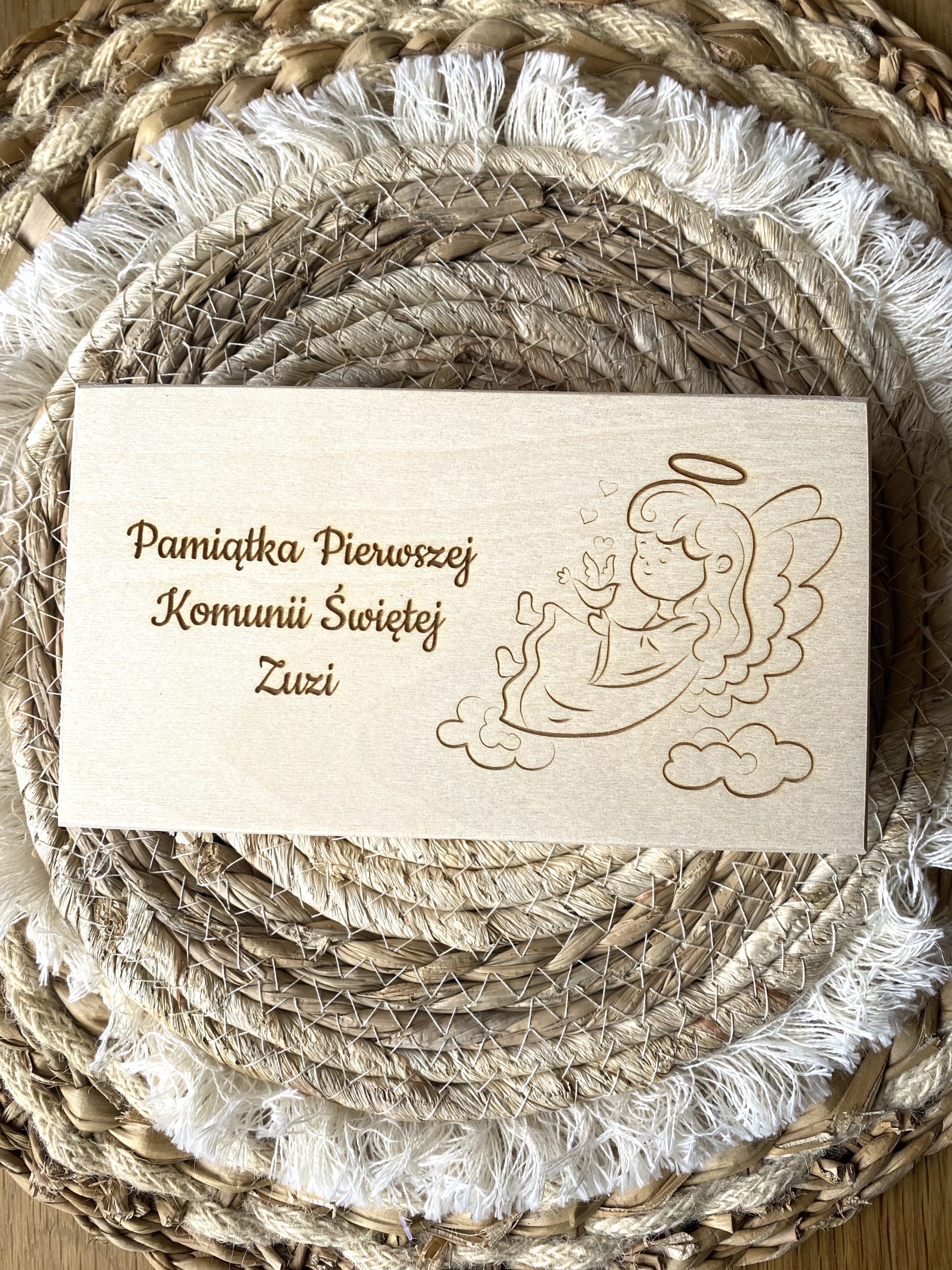 Pudełko z drewna prezentuje się niezwykle elegancko w swej prostocie. Nie ma na nim krzykliwych kolorów czy kiczowatych grafik. Motyw anioła, delikatny napis a w środku piękne życzenia. Nie potrzebujesz niczego więcej, by sprawić dobre wrażenie!