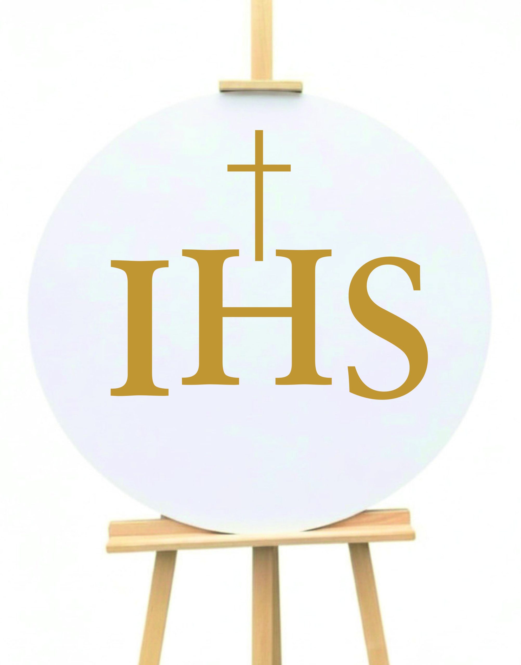 Dekoracja na sztaludze sprawdzi się przy wejściu do sali, w kościele lub w większym pomieszczeniu. Możesz dodatkowo udekorować ją pięknymi białymi kwiatami czy balonami, obok postawić latarenki, świece czy inne elementy, by dopełnić dekorację.